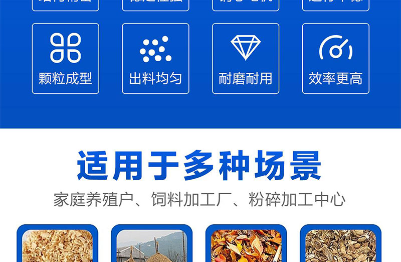 平模木屑顆粒機除了可以加工木屑外,還可以利用農作物的玉米桿、稻草、花生殼、玉米芯、棉花桿、雜草、樹枝、樹葉、鋸末、樹皮等廢棄物為原料。成型后的顆粒是一種新型的生物能源,它可代替木柴、原煤、燃油、液化氣等,廣泛用于取暖、生活爐灶、工業鍋爐、生物質發電廠等。